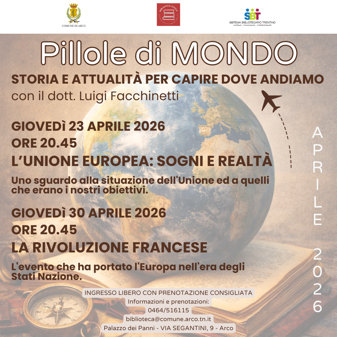 L’inizio è alle ore 20.45, l’ingresso è libero con prenotazione consigliata (0464 516115 oppure biblioteca@comune.arco.tn.it).