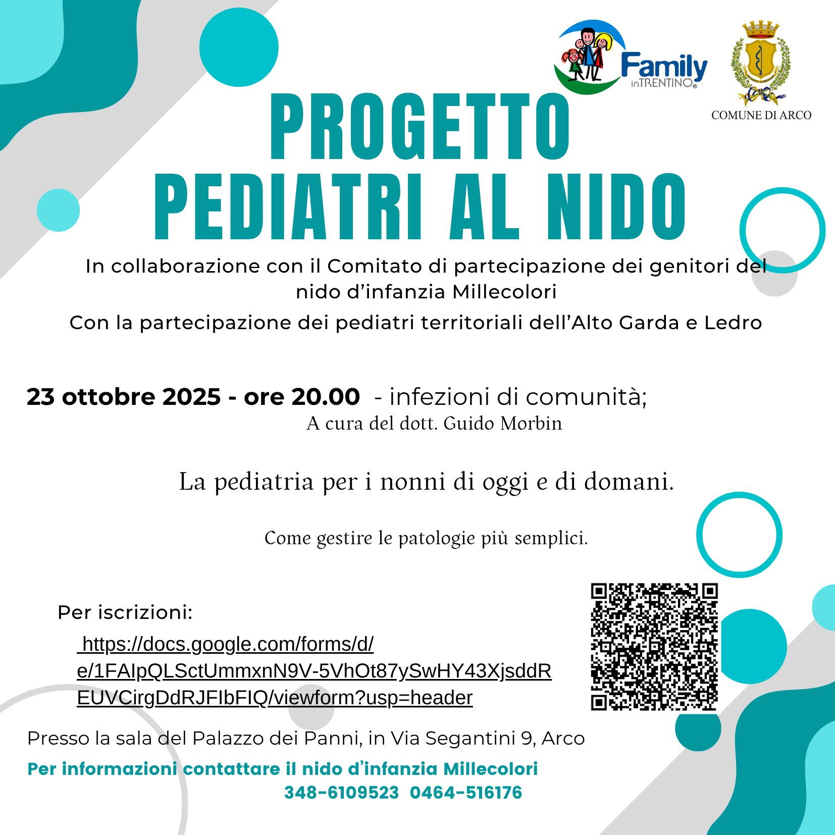 Secondo appuntamento, giovedì 23 ottobre nella sala auditorium di Palazzo dei Panni con inizio alle 20, con il ciclo di incontri «Pediatri al nido»: il dott. Guido Morbin tratterà il tema «Infezioni di comunità».