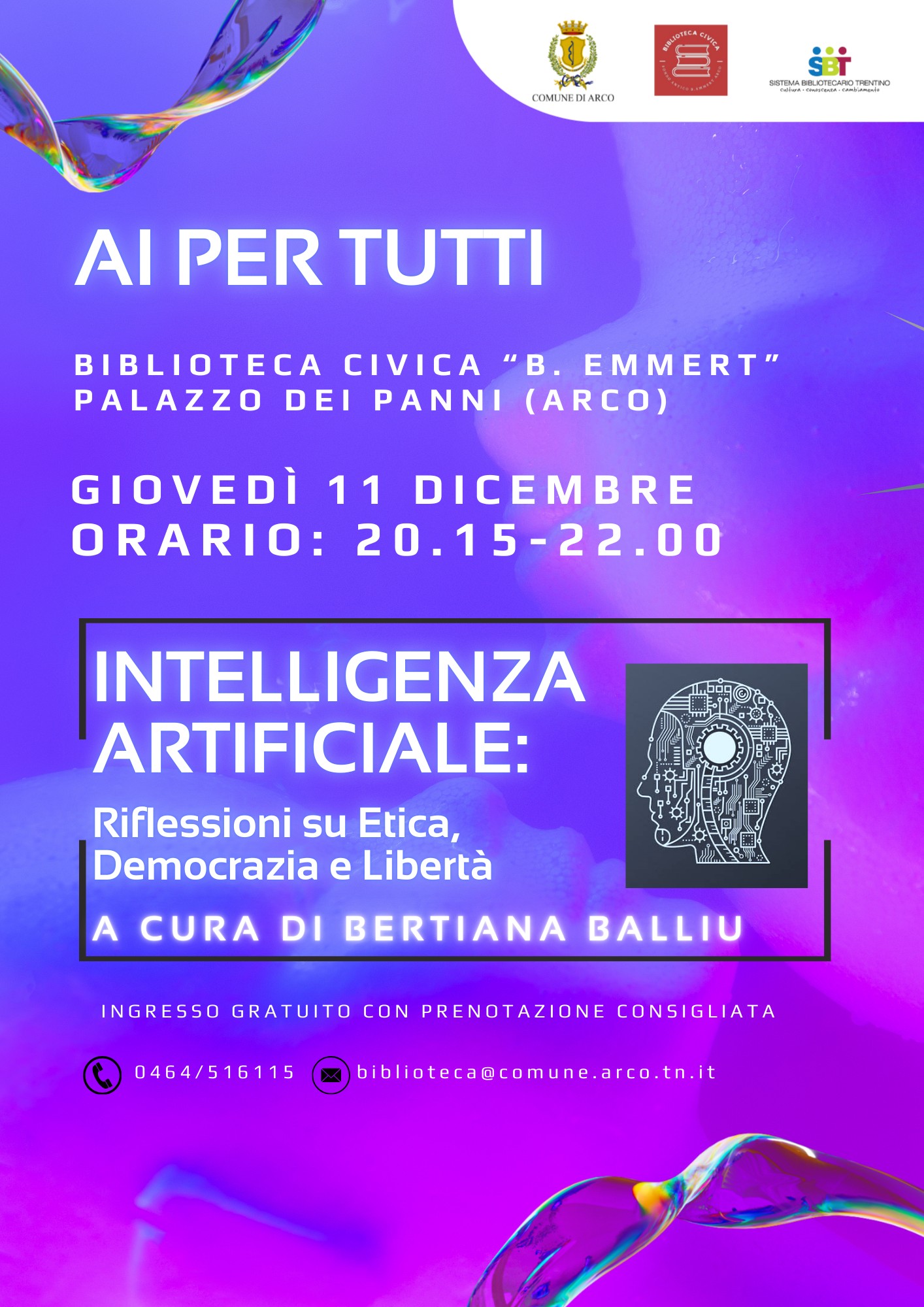 In questo appuntamento i temi saranno «AI: chi ha il controllo?», «Algoritmi e libertà», «Democrazia sotto algoritmo», «L’intelligenza che ci giudica» e «Etica artificiale?».
