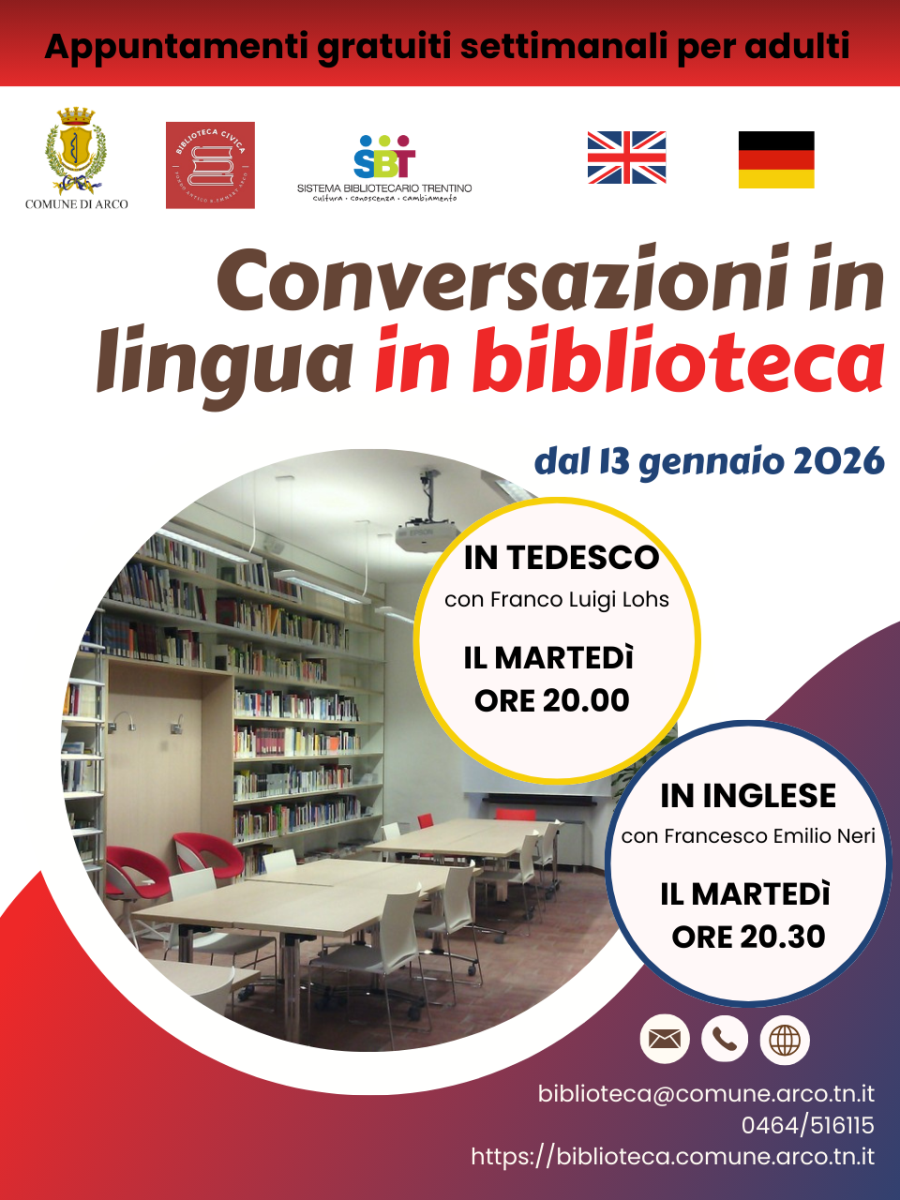 Un'apprezzata proposta della biblioteca civica «Bruno Emmert» che ogni martedì offre la possibilità di conversare in inglese o in tedesco all'interno di un gruppo informale guidati da un insegnante madrelingua. Gli incontri sono rivolti a un pubblico adulto con una conoscenza scolastica della lingua; è possibile iniziare a partecipare in qualsiasi momento durante tutto il periodo di svolgimento.